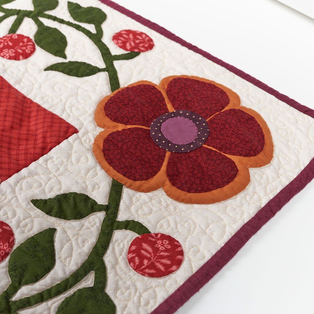 An additional supplement has been added to this quilt for a larger version of the pattern. This larger version measures 75 x 90 inches and includes additional hand applique detail around the border.