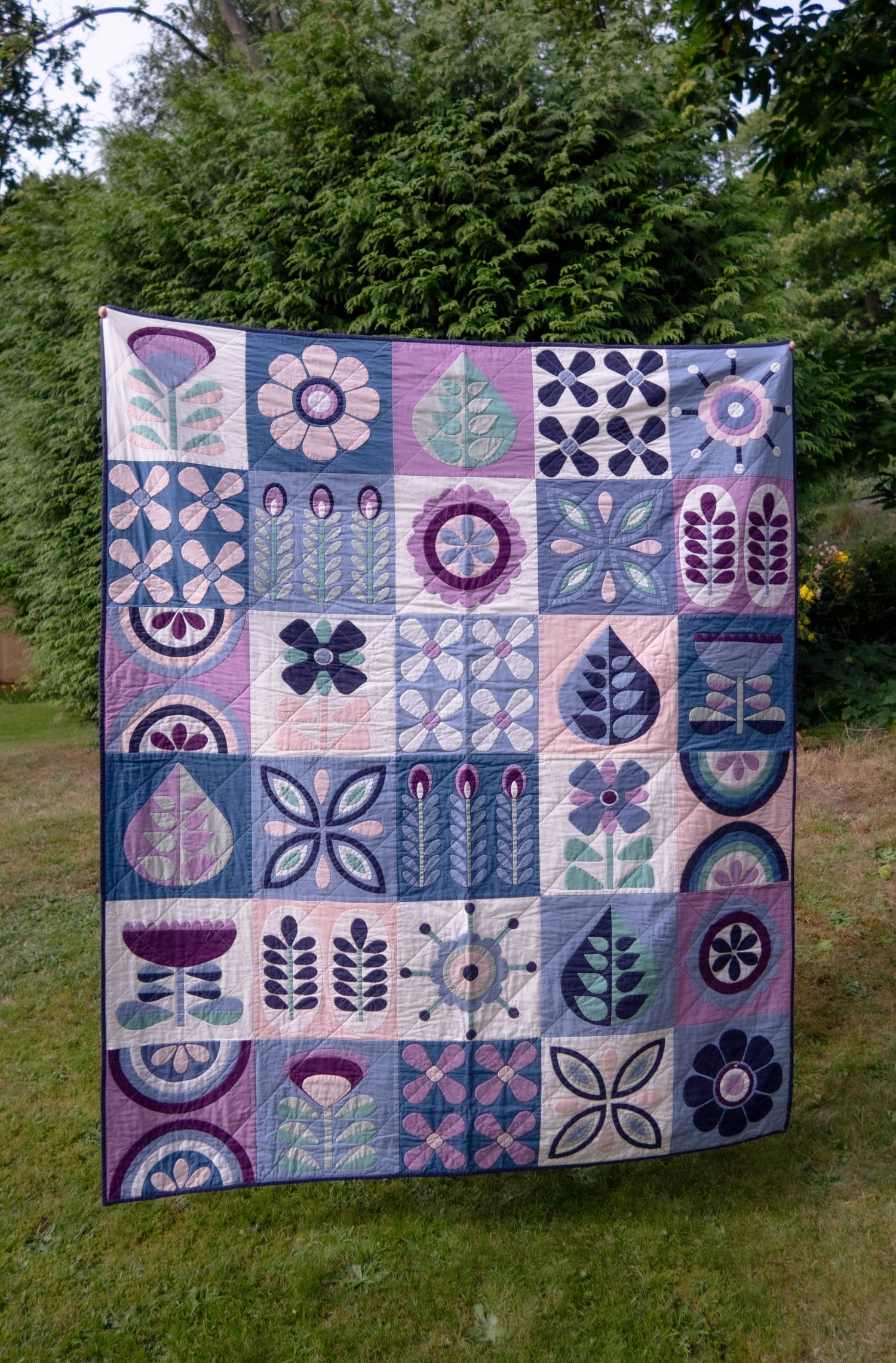 If you’d like a long, slow hand applique project then look no further than this BOM(block of the month) pattern. The ‘Blomma’ quilt, which means flower in Swedish, is inspired by modern scandi design. Comprising of 12 unique blocks, you can create a stunning quilt, whilst practising and improving your hand applique skills. This booklet gives you all 12 block patterns to create your very own unique quilt.